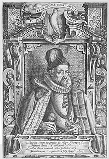- ↑ Hessisches Staatsarchiv Marburg, file 81 Government Hanau, document A 12,6f says it was on 23 November 1566 between 3 and 4 o'clock. Perhaps he was born in the night of 22 to 23 November 1566. He was baptized on 11 December 1566 in Bouxwiller