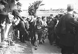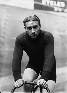 In 1914, he took his first stage victory, to Le Havre, holding the race from start to finish despite a 30-minute penalty for an unauthorised wheel change on the penultimate stage. His victory looked uncertain, his lead cut to less than two minutes ahead of Henri Pélissier.[4] Ironically, on the final stage from Dunkirk to Paris, the Frenchman's supporters along the route who were expecting victory over the Belgian were the reason he was prevented from launching a breakaway. He won the stage but Thys finished on his wheel to win the Tour.