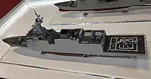 It has space for a 76mm primary naval gun in A-position, a 16-cell VLS (with space for 16 more) behind the primary naval gun, torpedo launchers on both port and starboard sides, and a gun-based close-in weapon system above the helicopter hangar. Aside from the CIWS, there is no more small-calibre secondary gun as previously expected.[12]
