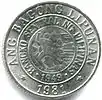 The current version has been minted since 1995 and is copper-coloured. It features no human at all. The reverse has the 1993 logo of the Bangko Sentral ng Pilipinas. The name of the republic, the date and denomination are all on the obverse.