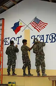 In 2012 the Philippines and the United States conducted joint military exercises.[64] As of 2012, a U.S. military contingent of 600, including Navy Seals and Seabees are stationed "indefinitely" in the Southern Philippines, in a declared non-combatant role to assist the Armed Forces of the Philippines in operations against the al-Quaida-linked Abu Sayyaf terrorist group primarily on the island of Basilan in western Mindanao and the Sulu islands, in particular Jolo, a long-time stronghold of Abu Sayyaf.[65]