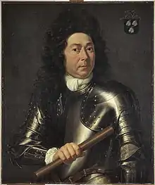 During the War of the Spanish Succession, he took part in the Battle of Vigo Bay on 23 October 1702, in which the Anglo-Dutch fleet destroyed the Franco-Spanish fleet, which was protecting the Spanish silver fleet. He played an important part in the battle. His 92-gun ship, Zeven Provinciën, broke into the bay second only to the ship of Thomas Hopsonn and captured the 68-gun Bourbon.[2][3] His flagship in 1703 was the 90-gun ship of the line Beschermer.[6] In 1704 he again assumed command of the North Sea Squadron which protected the Dutch herring fleets and defeated the Dunkirk Privateers.[2][3] In 1706, he was transferred to the command of the Dutch Mediterranean squadron, again sailing in Beschermer, but soon died aboard his ship on 9 July 1707 at the mouth of the Var River, aged 56. He was buried in Nice.[2][7][6]