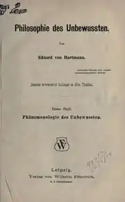Philosophy of the Unconscious: Speculative Results According to the Induction Method of the Physical Sciences (German: Philosophie des Unbewussten) is an 1869 book by the philosopher Eduard von Hartmann.[1] The culmination of the speculations and findings of German romantic philosophy in the first two-thirds of the 19th century, Philosophy of the Unconscious became famous.[2] By 1882, it had appeared in nine editions.[3] A three volume English translation appeared in 1884.[4] The English translation is more than 1100 pages long.[5] The work influenced Sigmund Freud's and Carl Jung's theories of the unconscious.[4][6]