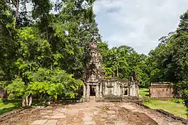 Phimeanakas (Khmer: ប្រាសាទភិមានអាកាស, Prasat Phimean Akas, 'celestial temple') or Vimeanakas (Khmer: ប្រាសាទវិមានអាកាស, Prasat Vimean Akas) at Angkor, Cambodia, is a Hindu temple in the Khleang style, built at the end of the 10th century, during the reign of Rajendravarman (from 941 to 968), then completed by Suryavarman I[1]: 115, 135 [2]: 371 in the shape of a three tier pyramid as a Hindu temple. On top of the pyramid there was a tower, while on the edge of top platform there are galleries. Phimeanakas is located inside the walled enclosure of the Royal Palace of Angkor Thom north of Baphuon.[3]