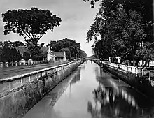 Further irrigation work was needed, however, as the new canal dried up during the dry season, thus preventing its use as a transportation route.[1][5][7] The Kapitein remedied this problem by extending the canal, through to what are now Jalan Djuanda and Jalan Veteran in Sawah Besar, in order to connect it to the Ciliwung river.[5][2][7][4]