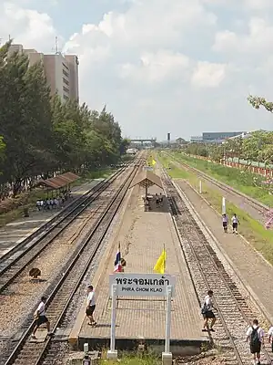 Phra Chom Klao Railway Halt (Thai: ป้ายหยุดรถไฟพระจอมเกล้า) is a railway halt of the eastern railway line located in the campus of King Mongkut's Institute of Technology Ladkrabang (KMITL), Lat Krabang Subdistrict, Lat Krabang District, eastern Bangkok.
