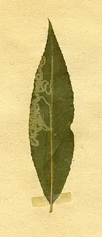 | Phyllocnistis valentinensis mines on Salix fragilis | |
