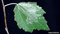 The larvae feed on Populus alba, Populus canescens and Populus tremula. They mine the leaves of their host plant. The mine consists of a long, rather broad, strictly epidermal corridor that curves in dense loops over the leaf upper-side, without ever crossing itself. The frass is deposited in a vague continuous central line. The gallery ends upon the leaf margin, where it widens a little, while the leaf margin folds over somewhat. Here pupation takes place. There is no cocoon.[3]