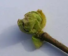 Phytoptus avellanae is an acarine gall-mite species inducing big bud galls of up to 10 millimetres (0.39 in) across, sometimes slightly open, on the buds of hazel (Corylus avellana) and on filbert (Corylus maxima).[1] Synonyms include Phytocoptella avellanae, Eriophyes avellanae, Calycophthora avellanae, Phytoptus coryli, Phytoptus pseudogallarum, and Acarus pseudogallarum.[2] The mites are white, about 0.3 mm long, with numerous tergites and sternites.[3] Two forms of P. avellanae exist, a gall causer and a vagrant form that has a more complex life-cycle and does not form galls.[4]