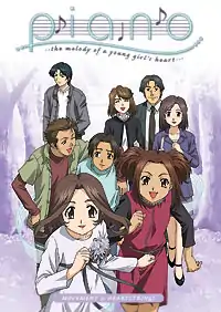 Piano: The Melody of a Young Girl's Heart (ピアノ Piano, stylized as PIANO) is an anime television series which aired from November 11, 2002 to January 13, 2003, and ran for 10 episodes. Three volumes were released on DVD by Right Stuf under their Nozomi Entertainment label in the North America as well as a complete collection in one collectors edition package, with their English dub being produced by NYAV Post. Centering on Miu Nomura (野村 美雨 Nomura Miu), the story follows her as she struggles to rediscover the joy in music and playing piano she once knew as a child. Character designs were done by Kōsuke Fujishima who came up with the concept and idea for the show.