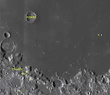 By convention these features are identified on lunar maps by placing the letter on the side of the crater midpoint that is closest to Picard.[4]