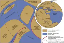 Reconstruction of the older phases of development is not possible because of absence of pre-triassic rocks. The development of Pieniny Klippen Belt started on passive margin of European platform in Lower Jurassic with rifting and tectonic subsidence of Oravic unit.[8] During the Middle Jurassic to Lowermost Cretaceous an elevated continental ribbon called the Czorsztyn Ridge evolved due to the thermal uplift and continental break-up at the southern side of the Czorsztyn Ridge. Rifting resulted in the opening of basinal area called the Kysuca basin or Vahic Ocean (South Penninic or Piemont ocean equivalent) to the south of the Oravic area.[9] In the Upper Jurassic entire Oravic domain began to thermally subside. Since Lowermost Cretaceous time probably an asymmetrical rifting affected the area to the North of the Czorsztyn Ridge where a Magura basin (North Penninic or Valais Ocean equivalent) started to evolve.