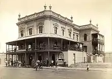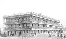 Patronage was boosted when the Adelaide and Glenelg Railway, which became the Glenelg tram line, went into service on 2 August 1873,[3] bringing in holidaymakers and customers[4] who had leisure time and spending money but did not own a horse and carriage. In 1876 the building was enlarged by another ten rooms and additional bathing facilities added.[5] The Holdfast Bay railway line gave a further boost to tourism in the area from 1880.