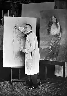 Between 1914 and 1916, he and Auguste François-Marie Gorguet proposed, planned and supervised the creation of the Panthéon de la Guerre, which was the world's largest painting (45 ft. high and 402 ft. in circumference)[3] containing almost 5,000 portraits of notable French and Allied wartime figures, mostly sketched from life. Twenty artists played a major role in its production, although many more made contributions. It was exhibited in a specially constructed display building (which was demolished in 1960) next to the Hôtel des Invalides. Later, it made its way to the United States, and reconfigured portions of it may now be seen in the National World War I Museum at the Liberty Memorial in Kansas City.[4] It was his second such work, following the much smaller Panorama de Notre-Dame de Lourdes from 1881.