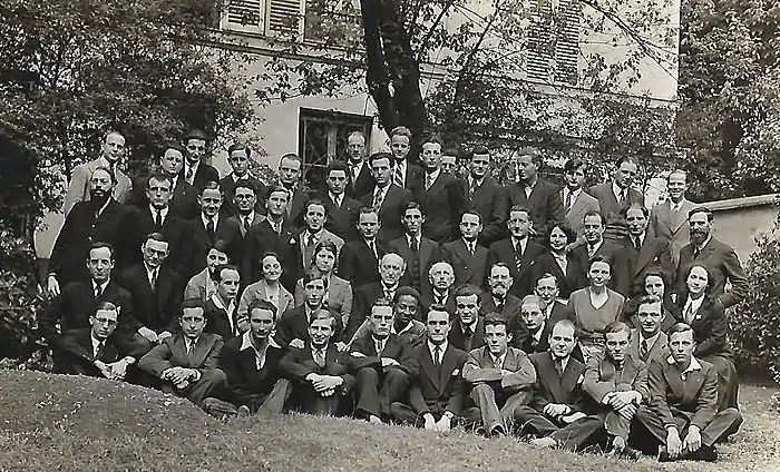 ![]() FACULTÉ de THÉOLOGIE de PARIS (1932/33 CLASS). Pierre Courthial: first row, far left. Pierre Marcel: fifth row, far left, light suit. Auguste Lecerf: third row, sixth from left. |