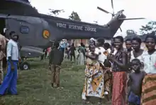 Yambuya returned to Congo in 1966 and, after obtaining his high school degree in Bas-Congo in 1970, he joined the Congolese military and obtained his helicopter pilot licence in Marignane, France in May 1975.[8] That same year, he returns to his native country to start at the helicopter squadron of Ndolo base, Kinshasa.[9] According to his tell-all memoir about his time in the Zairean army (Forces armées zaïroises, FAZ), Zaïre: l'abattoir, he regularly had to perform "special missions", moving prisoners to places where they were tortured or assassinated. On other occasions, he had to drop packages of up to 600 kg. filled with corpses and debris in a river.[10]