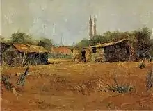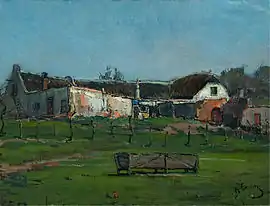 One morning he came across Malta Farm, one of the Cape's earliest landmarks and was so taken that he painted the scene until nightfall. Initially thinking the picture a failure, he was persuaded by Boonzaier to complete it the next day. It is considered one of his strongest works.