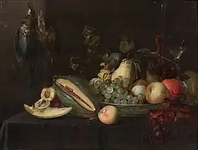 - ↑ Pieter van Overschie, Still life with fruit and birds at Lempertz