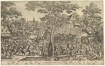 He may have been responsible for a number of engravings of peasant weddings, country fairs and feasts after the work of contemporary Flemish painters such as Pieter Bruegel the Elder, as well as of mythological and historical subjects.[12]