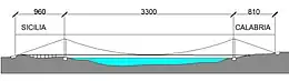 Cross-sectional diagram of the Strait of Messina Bridge.