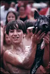 - ↑ "Greased Pig Scramble Is Evening's Big Draw". The Washington Post. 26 July 2007. Archived from the original on 12 October 2008. Retrieved 3 November 2009.