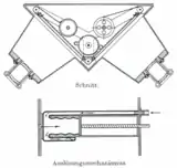 • One model had its lens fixed to a bag bellows. A scissor mechanism held the bellows in its expanded state until the photo was taken, but condensed it immediately afterwards. This allowed one exposure of size 6 cm × 9 cm on a photographic plate, at a focal length of 85 mm.