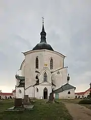 On the 17 July 1784 the roof of the church and its ambulatory caught fire.[3] Fortunately local citizens with great help of Matěj Sychra managed to save it from complete destruction. Permission to restore the church was given by the gubernium (administrative unit) in 1792 with the conditions that the church would no longer be a pilgrimage church, and that the cemetery of Žďár nad Sázavou would be moved to the church area.[3] Nowadays, the cemetery is no longer in use and is in fact being slowly moved out, to give the place the original look as it had in baroque times.[3] The church became a property of the state in 1953, but was returned to the Catholic Church in 2014.[3]