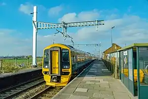![]() A Great Western Railway Class 158 train passes Pilning in 2018. | |