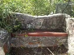 This stone seat, which is set into a stone fence along Stanley Terrace, was constructed by his family as a memorial to him. The seat was erected by his family in the corner of their property, as a memorial and for public use.[1]