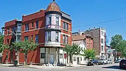 The Pilsen Historic District is a historic district located in the Pilsen neighborhood of Chicago. Pilsen is a neighborhood made up of the residential sections of the Lower West Side community area of Chicago. It is recognized as one of the few neighborhoods in Chicago that still has buildings that survived the Great Chicago Fire of 1871.[2] Pilsen was formally founded in 1878 making the neighborhood a factor in the political and economic change planned in Chicago.[2] In the late 19th century Pilsen was inhabited by Czech immigrants who named the district after Pilsen, the fourth largest city in Czechia. The population also included in smaller numbers other ethnic groups from the Austro-Hungarian Empire including Slovaks, Slovenes, Croats and Austrians, as well as immigrants of Polish and Lithuanian heritage. In 1934 majority of Poles, Croatians, Lithuanians, and Italians sustained Pilsen, making it an ethnic working-class neighborhood.[2]