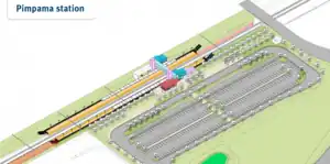 The planned location for Pimpama station is off the Old Pacific Highway, near the Pimpama City Shopping Centre. The station will be integrated with other modes of public transport, and is planned to feature connections with pedestrian and bicycle paths. The station concept design currently includes space for 330 car park bays.[2]