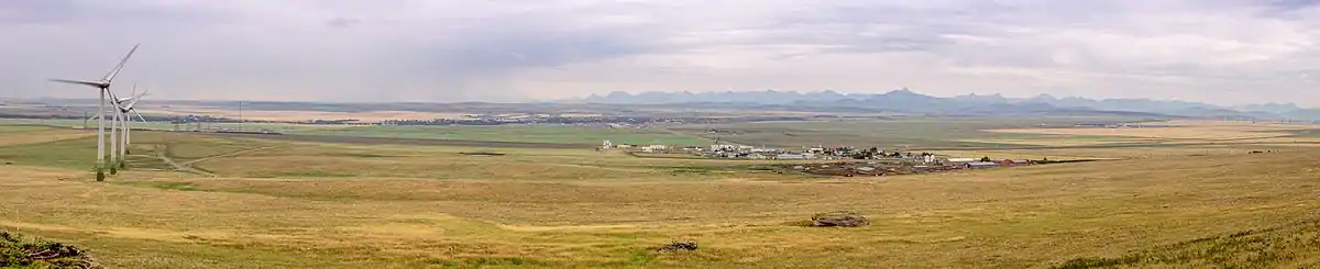 ![]() Pincher Creek as seen from the North, with the Canadian Rockies in the background | |