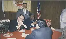 Furthermore, some say that because he was a second-generation native English speaker, he had an easier time working with mainstream (non-Asian) organizations and even politicians. Tom was an advisor to U.S. Senators (Paul Simon (politician), Carol Moseley-Braun), Illinois governors (James R. Thompson, Jim Edgar), and Chicago mayors (the late Harold Washington and Richard M. Daley).