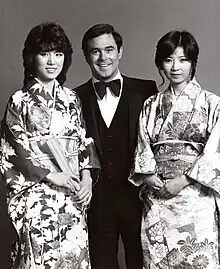 The language barrier proved to be the biggest obstacle. Mie and Kei had to hold English conversations using an on-set translator.[7] The writers struggled because once dialogue had been written for and learned by the ladies, it could not be changed.[8] This was particularly problematic when a guest star would be booked at the last minute, such as Lorne Greene, who agreed to appear on the show only four hours before the episode was taped.[8] Mie and Kei wanted to sing the songs that had made them famous in their native country, but NBC insisted they perform in English.[8] This resulted in recording English songs phonetically and lip-syncing for the show's taping.[7] Lip-syncing was already a common practice on American variety shows, but it was especially noticeable since the ladies were performing in a language that was foreign to them. Additional problems were caused when the network insisted the writers develop separate identities for Mie and Kei.[8] The established Pink Lady act was so fixed in unison that they performed as one entity, so the two were not comfortable having separate stage personalities.[8]