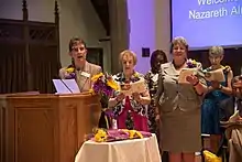 A pinning ceremony is a public event involving the family and friends of nurses being recognized. The nurses often dedicate their pins to a person who has made a significant impact on their lives.[3][6]