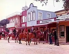 The park was opened on Memorial Day weekend 1966 by photography studio magnate Myron M. "Mike" Weiss, Sr. as a built-to-scale Dodge City, Kansas, complete with a saloon, general store, Pony Express office, opera house and casino, undertaker, and barber shop, highlighted by cowboy actors who staged gunfights at high noon.[1]