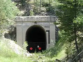 ![]() West portal of the Milwaukee Road's Pipestone Pass Tunnel. | |