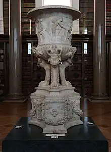 The Piranesi Vase or Boyd Vase is a reconstructed, colossal marble calyx krater from ancient Rome, on three legs and a triangular base, with a relief around the sides of the vase. It is 107 inches (2.71m) tall and 28 inches (0.71m) in diameter.