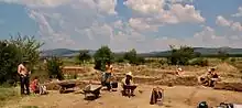 Archaeologists are still working to understand how it was possible to found a strongly fortified Greek city so far inland, even if the settlement was apparently accessible for small boats on the Hebrus River. An early theory offered by Professor Mieczyslaw Domaradzki was that the city was also a royal residence of the sub-king of the Upper Thrace. However, no palace, or any other archaeological evidence for significant social hierarchy, has been uncovered at Pistiros, in contrast to other Thracian sites such as Seuthopolis, and M. Domardzki changed his mind soon after the inscription was found.[11] Only a few scholars, among them G. Tsetskhladze, still expressed such opinion still in late nineties. The identification of the site as Emporion Pistiros continues to present some controversy.[12]
