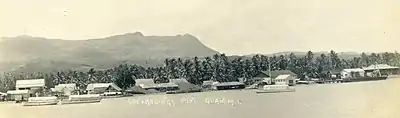During the 1898 American Capture of Guam, Piti was the location of the formal Spanish surrender. The following year, the Americans established a Navy Yard at Piti, followed by a USDA agricultural experiment station in 1909. The Piti Navy Yard was one of the primary targets of Japanese bombing during the 1941 Japanese invasion, driving many residents to flee north on the road to Hagåtña. During the Japanese occupation of Guam, CHamorus were forced to expand Piti's rice fields to help feed the occupying troops. They were also forced to haul coastal defense guns into the Piti hillside, though they were not operational by the time of the American liberation in 1944.[3] The U.S. military substantially reconstructed and altered the shoreline of Apra Harbor as Guam became a major base for the remainder of the Pacific War. In 1948, the U.S. government declared an eminent domain taking of parts of Piti, as well as Sumay and Agat, for little or no compensation, moving the local population from the harbor shoreline.[4]