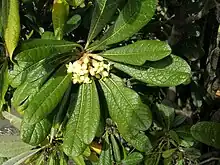 Pittosporaceae is a family of flowering plants that consists of 200–240 species of trees, shrubs, and lianas in 9 genera.[4] Habitats range from tropical to temperate climates of the Afrotropical, Indomalayan, Oceanian, and Australasian realms. The type genus is Pittosporum Banks ex Gaertn.[5]
