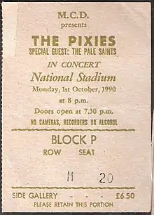 A Pixies ticket from October 1, 1990