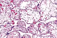- ↑ Stallmach, T.; Hebisch, G. (Jul 2004). "Placental pathology: its impact on explaining prenatal and perinatal death" (PDF). Virchows Arch. 445 (1): 9–16. doi:10.1007/s00428-004-1032-2. PMID 15138817. S2CID 12463921.