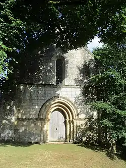 Facade of the Romanesque chapel of Plaincourault, facing west.