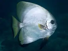 - 1 2 3 P. C. Heemstra (2001). "Ephippidae (spadefishes (batfishes)". In Carpenter, K.E. & Neim, Volker H. (eds.). The Living Marine Resources of the Western Central Pacific Volume 5: Bony fishes part 3 (Menidae to Pomacentridae) (PDF). FAO Species Identification Guide for Fishery Purposes. FAO Rome. p. 3614.