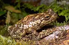 Platypelis grandis is a species of frog in the family Microhylidae. It is endemic to Madagascar. Its natural habitats are subtropical or tropical moist lowland forests and subtropical or tropical moist montane forests. It is threatened by habitat loss. Juveniles are recognizable by the green protuberances on their body, which help them camouflage and hunt. When mature, coloring is brown and green. Insects make up the bulk of their diet.