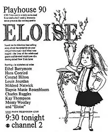 Between 1954 and 1960, John Frankenheimer directed 152 live television dramas, an average of one every two weeks. During the 1950s he was regarded as television's top directorial talent and much of his significant work was for Playhouse 90, for which he directed 27 teleplays between 1956 and 1960. He began with Forbidden Area (October 4, 1956), adapted by Serling from the Pat Frank novel about Soviet sabotage, following with Rendezvous in Black (October 25, 1956), adapted from Cornell Woolrich's novel of twisted revenge; Eloise (November 22, 1956), adapted from the book by Kay Thompson and Hilary Knight; and The Family Nobody Wanted (December 20, 1956), from the Helen Doss book about a childless couple who adopt a dozen children of mixed ancestry, a book brought to television again in 1975.