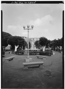 Plaza Degetau was originally called Antigua Plaza Real (Old Royal Plaza),[18] and later, Plaza Mayor (Main Plaza).[19] In the early 20th century its name was officially changed to Plaza Federico Degetau, in honor of Federico Degetau, the first Resident Commissioner of Puerto Rico to the United States House of Representatives.