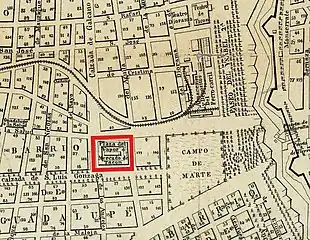 In the early morning of September 7, 1872 a fire destroyed the previous mercado de Tacón and it was necessary to install a provisional market in the Campo de Marte. The Public Works Advisory Board met on April 29, 1874 and the decision was made to replace the old market in the same place with the name Plaza de Tacón. The fruit stalls, the little shops, the clothing stores, the fur shops and a thousand other establishments that adorned the street gave each side of the building its particular character.[7] With some exceptions, the shopkeepers invented new ways to attract customers, otherwise nothing remarkable happened in the Plaza de Vapor during the working hours; as the night fell, one found the animation of the city, the electric lights, the silence on the interior courtyard and the darkness.[8]