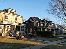 The earliest large, stylish houses in Marshfield were built starting in 1880 by the officers of the Upham Company, west of Central near their sawmill in what is now the Upham House Historic District.[4] Not long after, other businessmen and professionals began building large, stylish houses a few blocks east of Central on what was probably already called Pleasant Hill. It wasn't much of a hill, but it was higher than Central Avenue,[2] and it must have seemed pleasant compared to the dirt and noise on Central.